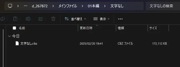 変換後のファイルは、画像とcomicinfo.xml(作品の情報が入っている)というファイルを圧縮した形式のCBZファイル形式になっている。
